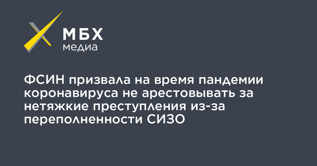 ФСИН призвала на время пандемии коронавируса не арестовывать за нетяжкие преступления из-за переполненности СИЗО