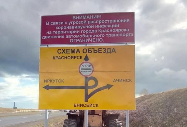 Знаки установлены на дорогах со стороны Енисейска, Ачинска, из п. Элита. Полный список мест, где расположены КПП, можно посмотреть здесь.«Сегодня завершаем обустройство мест КП, финальный штрих – размещаем информационные щиты, объясняющие, почему транзитный транспорт направляем в обход. Напоминаю, такие временные контрольно-пропускные пункты в крае появились на 12 участках. Контроль уже ведется», – сообщил он.