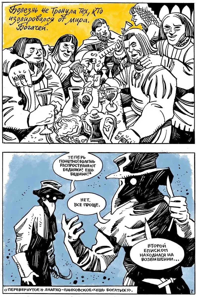 Печальная примета всех пандемий — страшные черные зловонные трупы, в изобилии и беспорядке покрывавшие улицы. Для их уборки опять же с завидным постоянством открывались двери тюрем и выпускались уголовники всех мастей, что никак не добавляло порядка. Мародерства добавляло. И разнесения заразы через перепродажу вещей из зачумленных домов. Проблемы с продуктами и отсутствием медицинской помощи, страх и отчаяние вызывали массовые психозы, в том числе выливавшиеся в чумное веселье и чумные пляски.