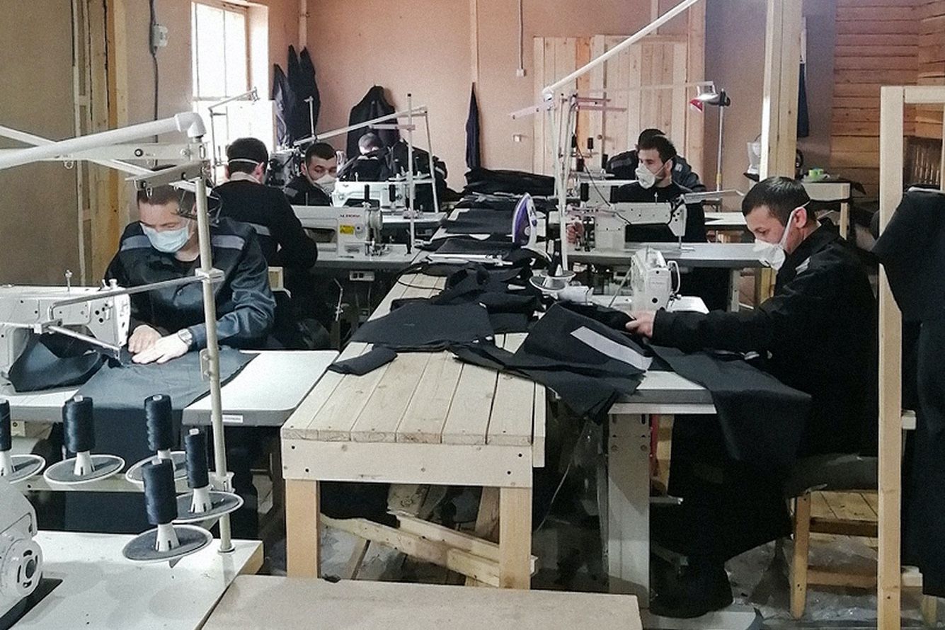 В швейном цехе свердловской ИК-55 два десятка осужденных с января шьют робы для других заключенных. В апреле здесь не только не остановили, но и нарастили производство: если за январь были пошиты 200 костюмов, за февраль — 220, в марте — 500, то только за шесть дней в апреле — больше 300 штук. «Осужденные, которые набирают обороты в швейном производстве, стимулируются поощрениями и благодарностями от администрации», — подчеркивают в ГУ ФСИН.
