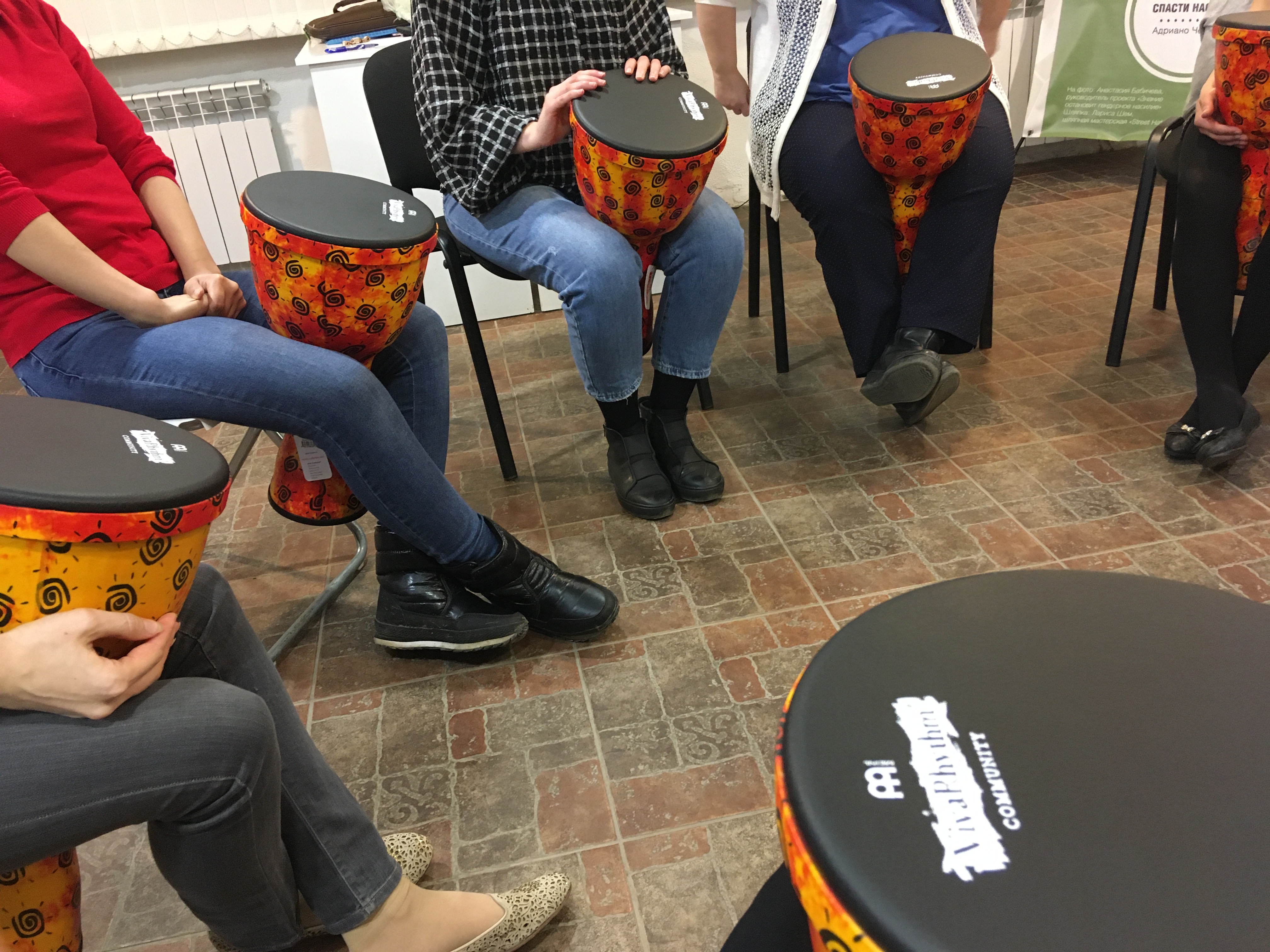Арт-терапия в свою очередь делится на два типа: театральные и музыкальные практики. Театральные направлены на развитие эмпатии, а музыкальные – на развитие саморегуляции. Для того чтобы слушатели научились контролировать свои эмоции и работать с ними, им предлагают проиграть чувство гнева и обиды на барабанах.