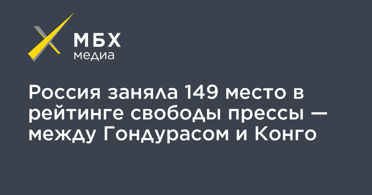 Россия не изменила свою позицию в ежегодном глобальном рейтинге свободы прессы и снова заняла 149 место из 180. Рейтинг опубликован на сайте организации «Репортеры без границ».