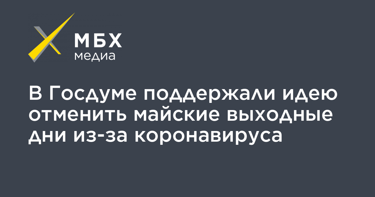 В Госдуме поддержали идею отменить майские выходные дни из-за коронавируса