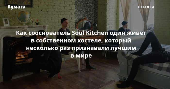 Полностью интервью с Сергеем можно прочитать на сайте The Village. Ранее «Бумага» подробно рассказывала историю хостела Soul Kitchen, который создали в бывшей коммуналке.