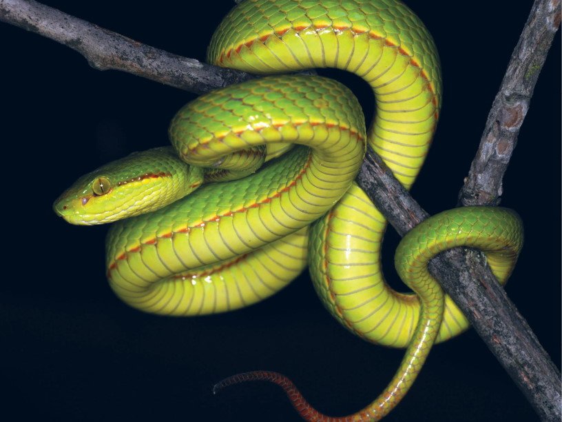 «Змеи рода Trimeresurus морфологически загадочны, что затрудняет их различение в полевых условиях, — говорит Зишан Мирза из Национального центра биологических наук Индии. — В результате их реальное разнообразие может быть недооценено. Новый вид зеленого цвета демонстрирует уникальную оранжево-красноватую полосу на голове и теле у самцов». Он был открыт во время герпетологической экспедиции 2019 года в штате Аруначал-Прадеш.