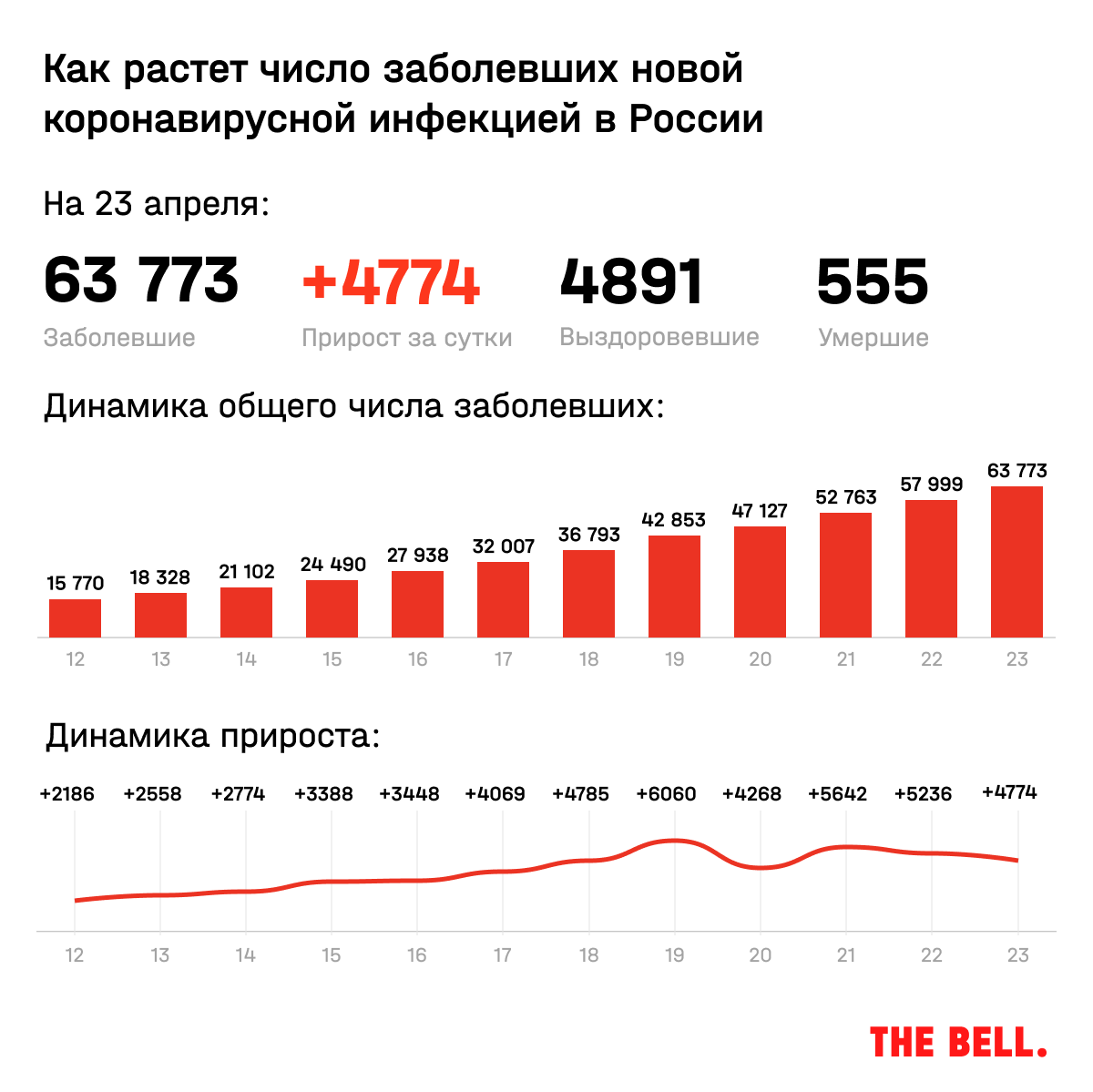 Новых случаев заражения в России в четверг заметно меньше, чем накануне (5236), а вчера было меньше, чем во вторник (5642). Но говорить о выходе на плато по таким данным еще рано. Тем более что есть и другая неприятная тенденция — число госпитализаций в Москве растет: в четверг в больницы было доставлено 1,9 тыс. человек против 1,3 тыс. в день на прошлой неделе.