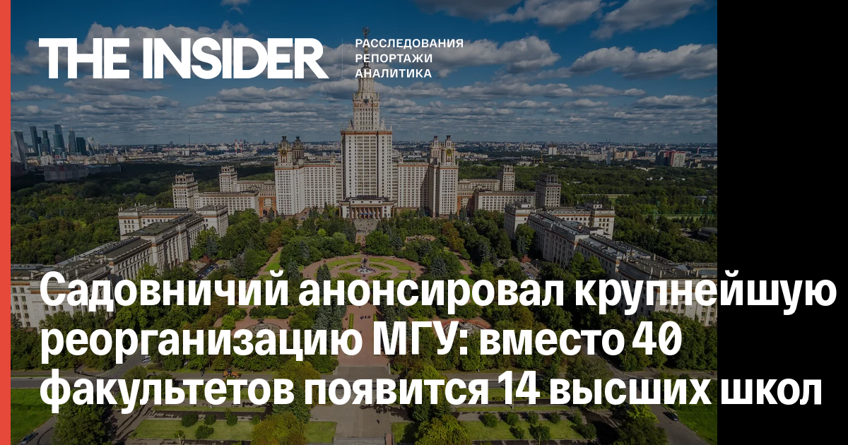 Садовничий анонсировал крупнейшую реорганизацию МГУ: вместо 40 факультетов появится 14 высших школ