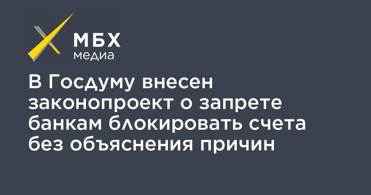 Банкам хотят запретить блокировать счета без объяснения причин, сообщает «Коммерсантъ». Правительство внесло в Госдуму законопроект, запрещающий банкам блокировать счета без объяснения причин, а также отказывать клиентам в проведении операций.