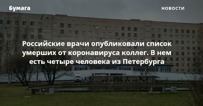 О смерти других трех медработников из Петербурга официально не сообщалось. В комитете по здравоохранению «Бумаге» рассказали, что у них «либо были другие тяжелые болезни, которые привлекли к смерти, либо они заразились не при исполнении трудовых обязанностей».