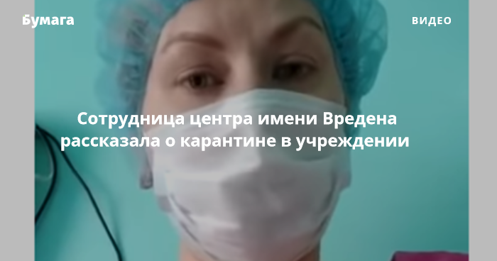 Сотрудница центра имени Вредена, которая находится в учреждении на карантине, записала видео с рассказом о ситуации в больнице. Ролик опубликован на ютьюбе.