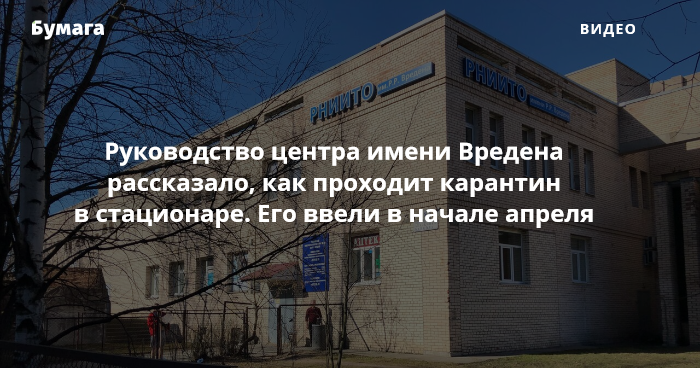 Исполняющий обязанности директора в центре имени Вредена в Петербурге Андрей Черных записал обращение к пациентам и сотрудникам, в котором рассказал о ситуации в больнице. В начале апреля в стационаре ввели карантин из-за коронавируса, официальной информации о количестве заболевших нет.