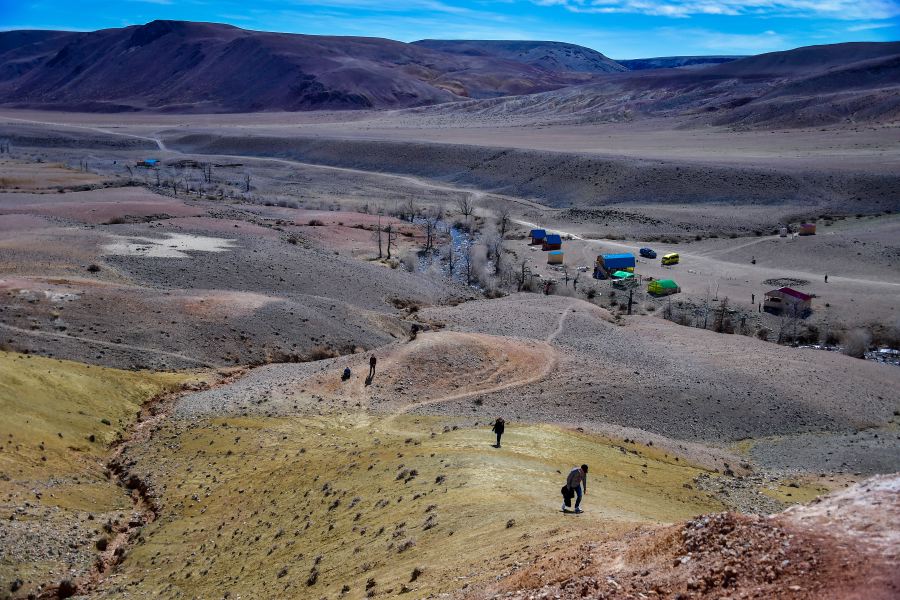Алтайский край. Цветные горы Кызыл-Чина в Кош-Агачском районеФото: Юрий Смитюк/ТАСС — Поток туда в последние два-три года, и правда, поразительно вырос. Я сама это отчетливо заметила по Марсу — месту в Кош-Агачском районе, где горы окрашены в красный цвет. Пять лет назад там людей было ноль, а теперь кругом тропы!