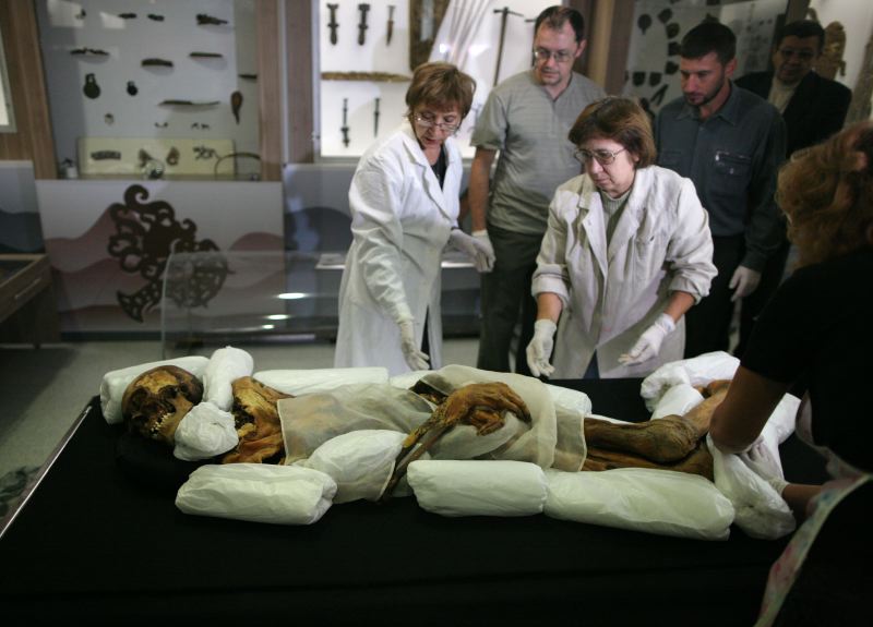 Сотрудники музея института археологии и этнографии СО РАН упаковывают мумию принцессы Укока для передачи ее в национальный музей имени А. В. Анохина в Республике АлтайФото: Александр Кряжев/РИА Новости — Акай, я слышала, вы собираетесь проводить обряды, чтобы уберечь Алтай от коронавируса.
