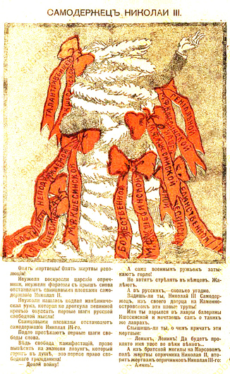 Уже к июлю 1917-го Ленин маркируется современниками как новый царь (новый «кровавый Николашка»!), идущий по трупам к своему трону… Более того, есть примеры, когда его печатно именуют не иначе как Николай III (!); эта проекция дополнительно усиливается журналистским псевдонимом Владимира Ильича Ульянова — Николай Ленин.