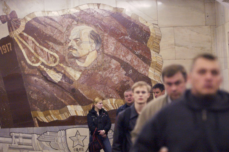 Замечаем ли мы, что имя Ленина и по сей день растворено в российских городах и весях, улицах и проспектах [3], названиях учреждений и институций? Сегодня, спустя 30 лет после краха созданной им страны, его имя и его лики мы, по сути, видим все так же ежедневно — если даже не всегда на земле, то под землей, спускаясь в метро. Впрочем, мы, скорее всего, не замечаем этого — автоматизм восприятия и рутинность обыденности выносят образ вождя на периферию сознания.