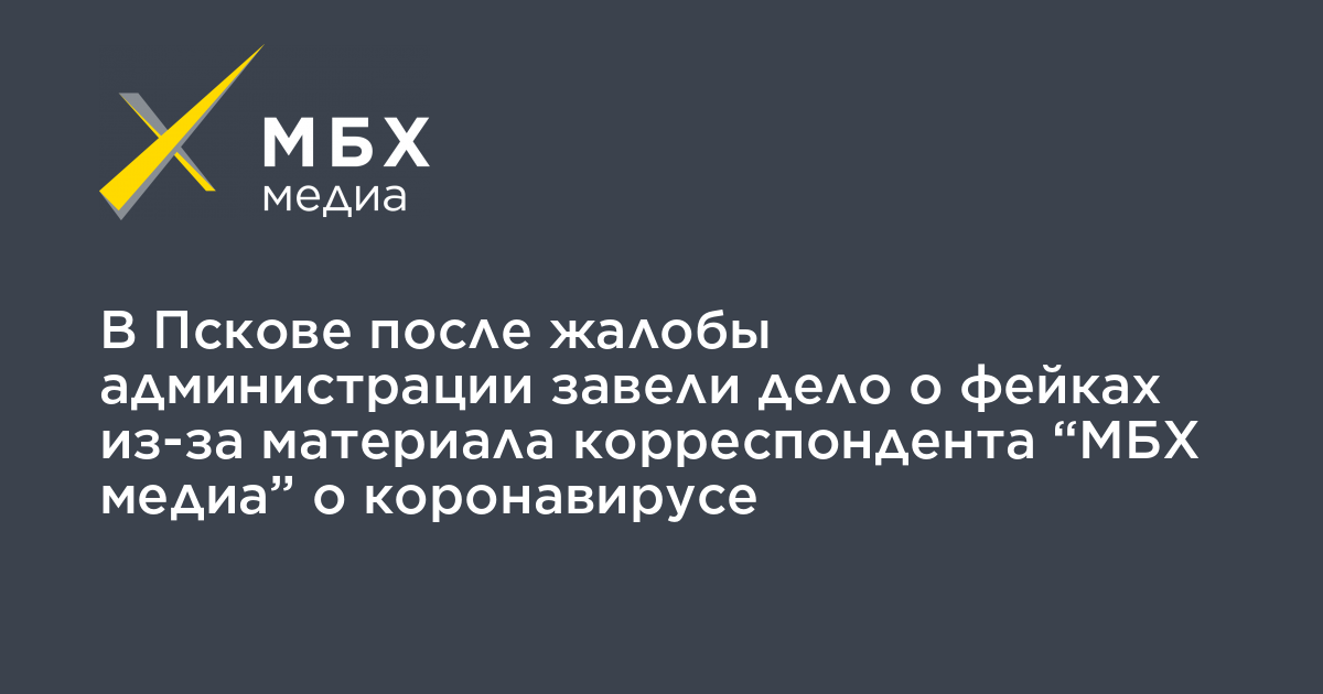 В Пскове после жалобы администрации завели дело о фейках из-за материала корреспондента «МБХ медиа» о коронавирусе