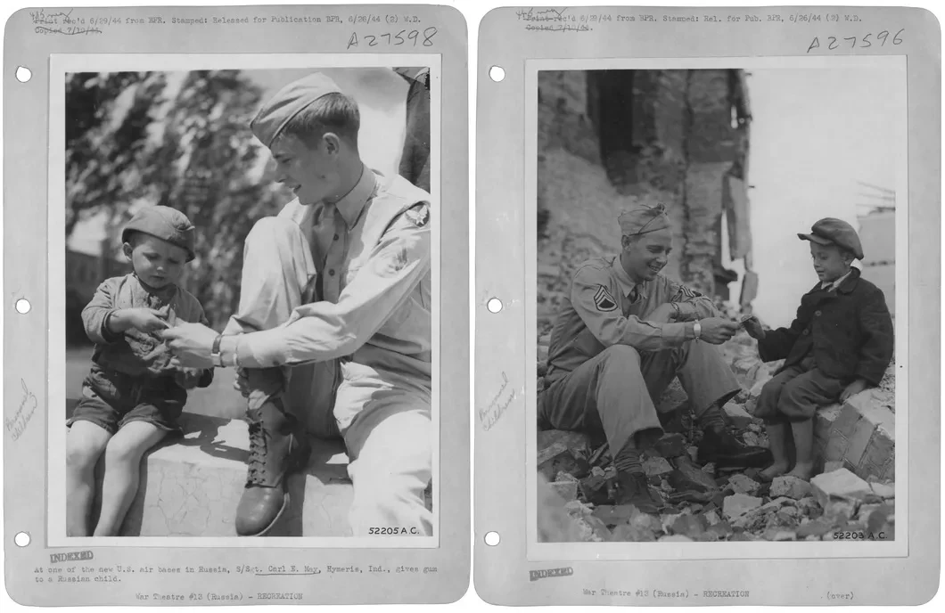 «Все мы были молоды, — благодушно делился впоследствии в своих опубликованных воспоминаниях некий Щепанков, начальник оперативного отдела базы. — Американец взял любимую на борт бомбардировщика, но кто-то доложил в контрразведку, и ни девушку из инженерного батальона, ни этого летчика больше никто не видел». Существуют мемуары иного рода, не исключаю, надиктованные в кабинете СМЕРШевца, чтобы показать вышестоящему начальству — «советские вольнонаемные гражданки не торгуют принципами. Американцы часто хотели угостить нас шоколадными конфетами, но мы не брали, боялись, что отравленные». А вот запретить мальчишкам, совсем мелким оборвышам, босоте, безотцовщине военной, преследовать на улицах дядек в форме, но не фрицев, что говорят по-непонятному, но всегда раздают жвачки, «органы» не могли.