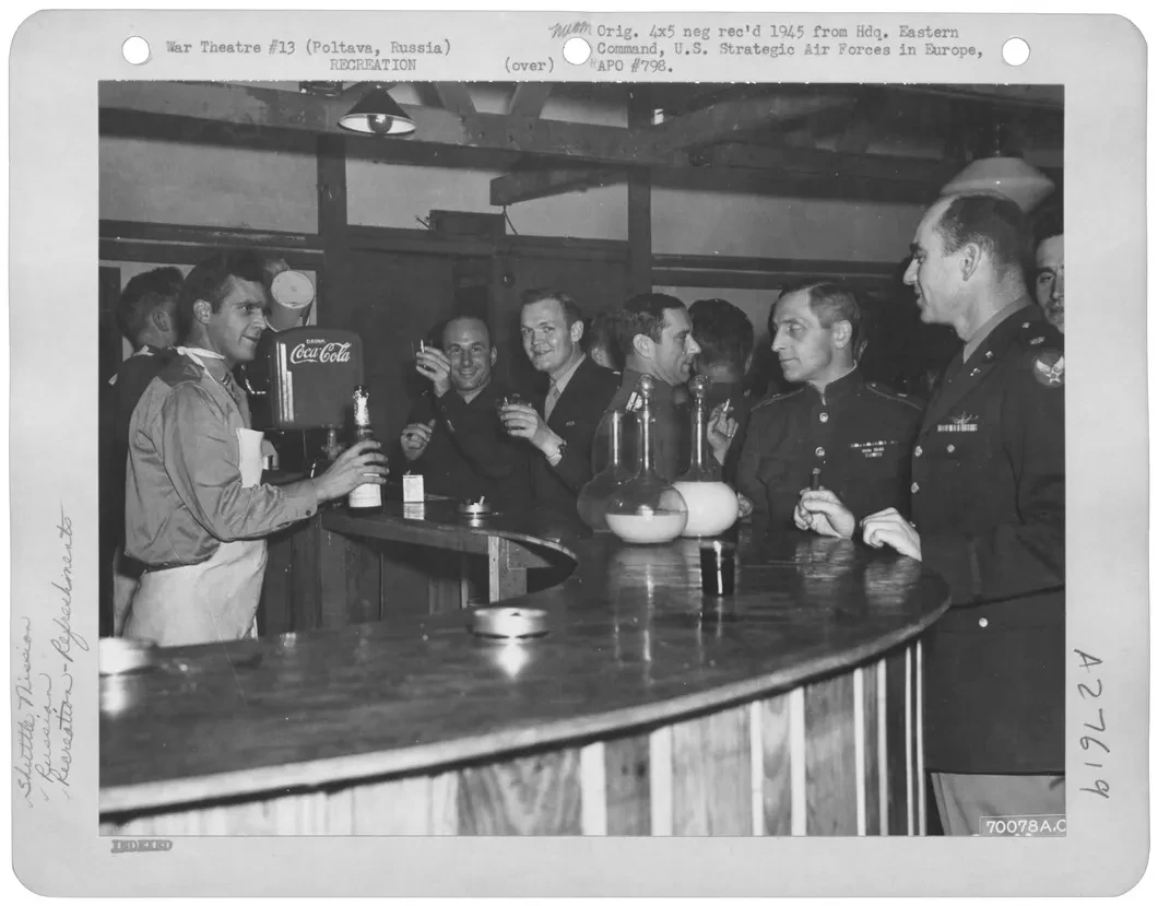 Решением советского правительства число постоянно пребывающих на базе американских военных не могло превышать 1270 человек. Техобслуживанием самолетов, охраной, организацией быта и остальным занималась «принимающая сторона». Ни до, ни после Полтава не видывала такого: Американский клуб с библиотекой, молельной комнатой, кинозалом, где фильмы чередовались с концертами самодеятельности, танцпол и лаковая барная стойка: кока-кола, виски, сигары.
