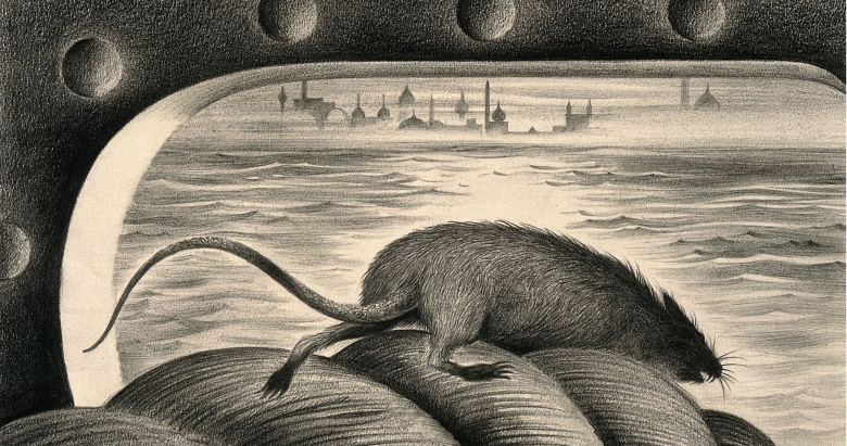 Крыса, бегущая с корабля. Литография Альберта Ллойда Тартера, 1940-е годы