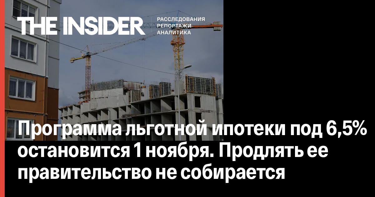 Программа льготной ипотеки под 6,5% остановится 1 ноября. Продлять ее правительство не собирается