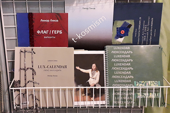 И, разумеется, все это — не просто слова, а настоящая, ощутимая производственная жизнь, которую Линор Линза ведет по ее люкскалендарю и запечатлевается во всевозможных книгах (и календарях) художника, принтах на ткани, арт-объектах и официально подаваемых властям сверхрационализаторских предложениях из серии: «космо-инсталляции техники, внеземных станций или ландшафтов планет пусть присутствуют повсюду — от частных домов и парков до учреждений и промышленных территорий». Получается, как у Федорова, у авангардистов-жизнестроителей: искусство не рассуждает о за-человеческом, но здесь и сейчас оказывается лабораторией антигравитации, прорывом «отсюда — туда и дальше» (Линор Линза).