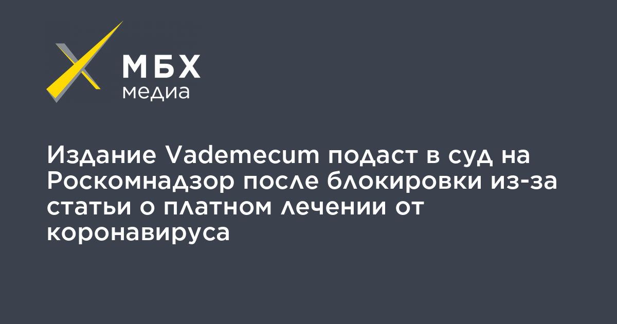 Издание Vademecum подаст в суд на Роскомнадзор после блокировки из-за статьи о платном лечении от коронавируса, сообщил «МБХ медиа» юрист Александр Попелюк, который готовит иск.