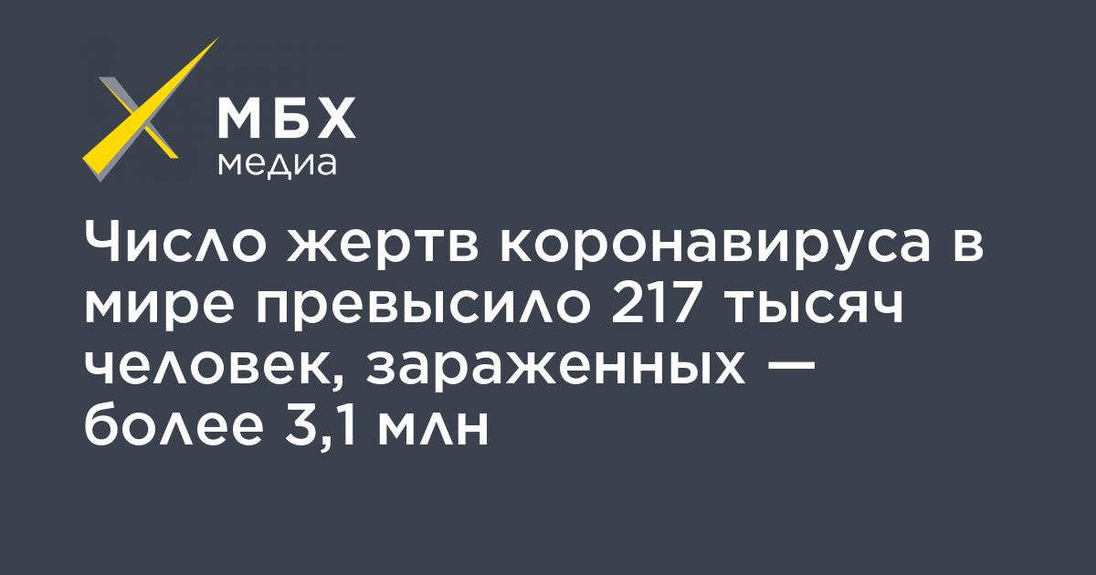 Число жертв коронавируса в мире превысило 217 тысяч человек, зараженных — более 3,1 млн