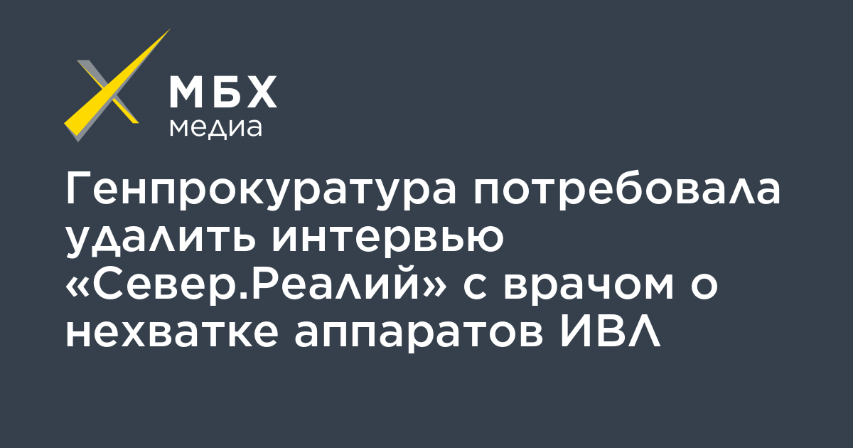 Генпрокуратура потребовала удалить интервью «Север.Реалий» с врачом о нехватке аппаратов ИВЛ