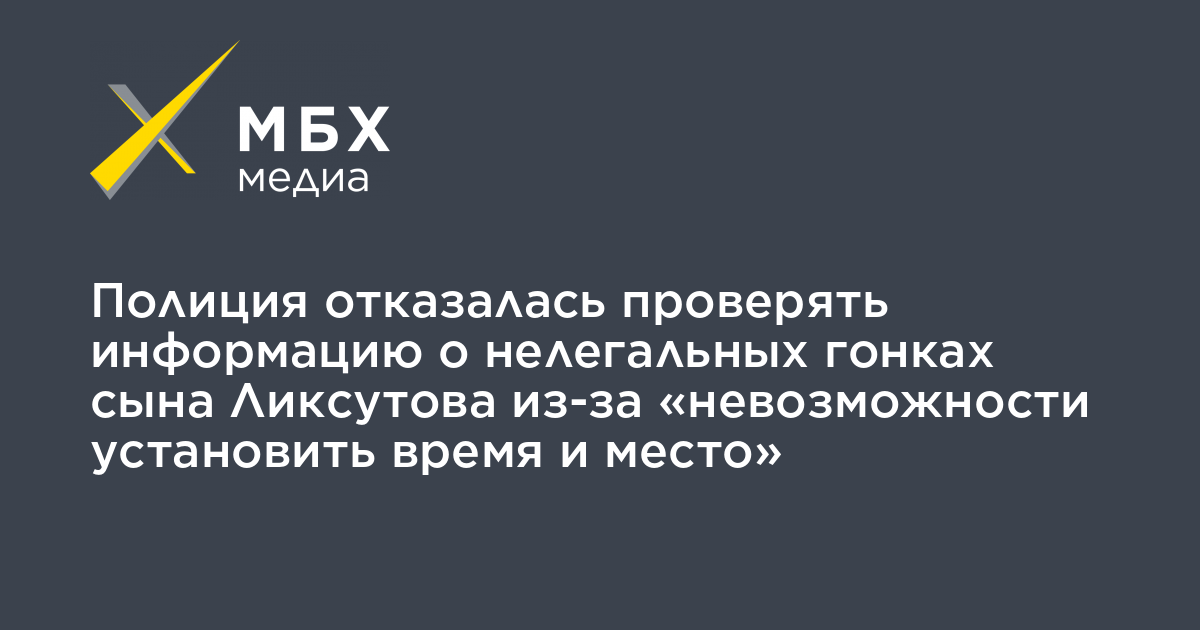 Главное управление МВД Москвы отказалось проверять информацию о том, что 15-летний сын заммэра Москвы Максима Ликсутова не изолировался после возвращения из Куршевеля и попал в ДТП во время участия в нелегальных уличных гонках. Об этом сообщает московский штаб Навального.
