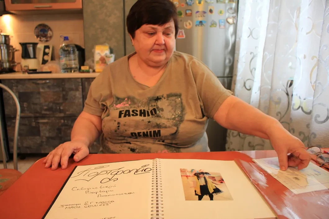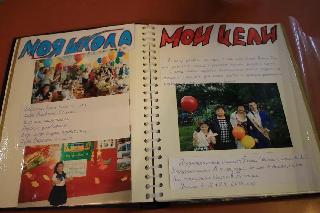 Ольга Викторовна листает Варино портфолио: папку, в которую они вместе собирали рисунки, сочинения и стихи для всероссийского конкурса. «Варя родилась, я все купила — камеру, компьютер, все для Вари», — твердо говорит Ольга Викторовна. «Все для Вари», — вторит ей Вера, она стоит рядом, немного сгорбившись и скрестив руки, как будто все время пытается себя обнять.