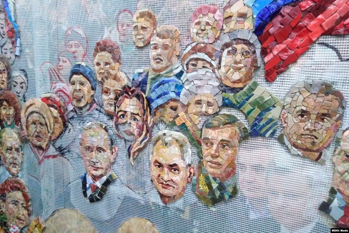 На прошлой неделе информресурс "МБХ медиа" опубликовал фотографии незаконченных мозаик, которыми будут украшены стены главного храма Вооруженных сил России. На одном из фото видны изображения президента России Владимира Путина, министра обороны Сергея Шойгу, главы Совета Федерации Валентины Матвиенко, председателя Госдумы России Вячеслава Володина, секретаря Совета безопасности Николая Патрушева и директора ФСБ Александра Бортникова, а также надпись "Крым наш". Эта мозаика посвящена аннексии Крыма в 2014 году.