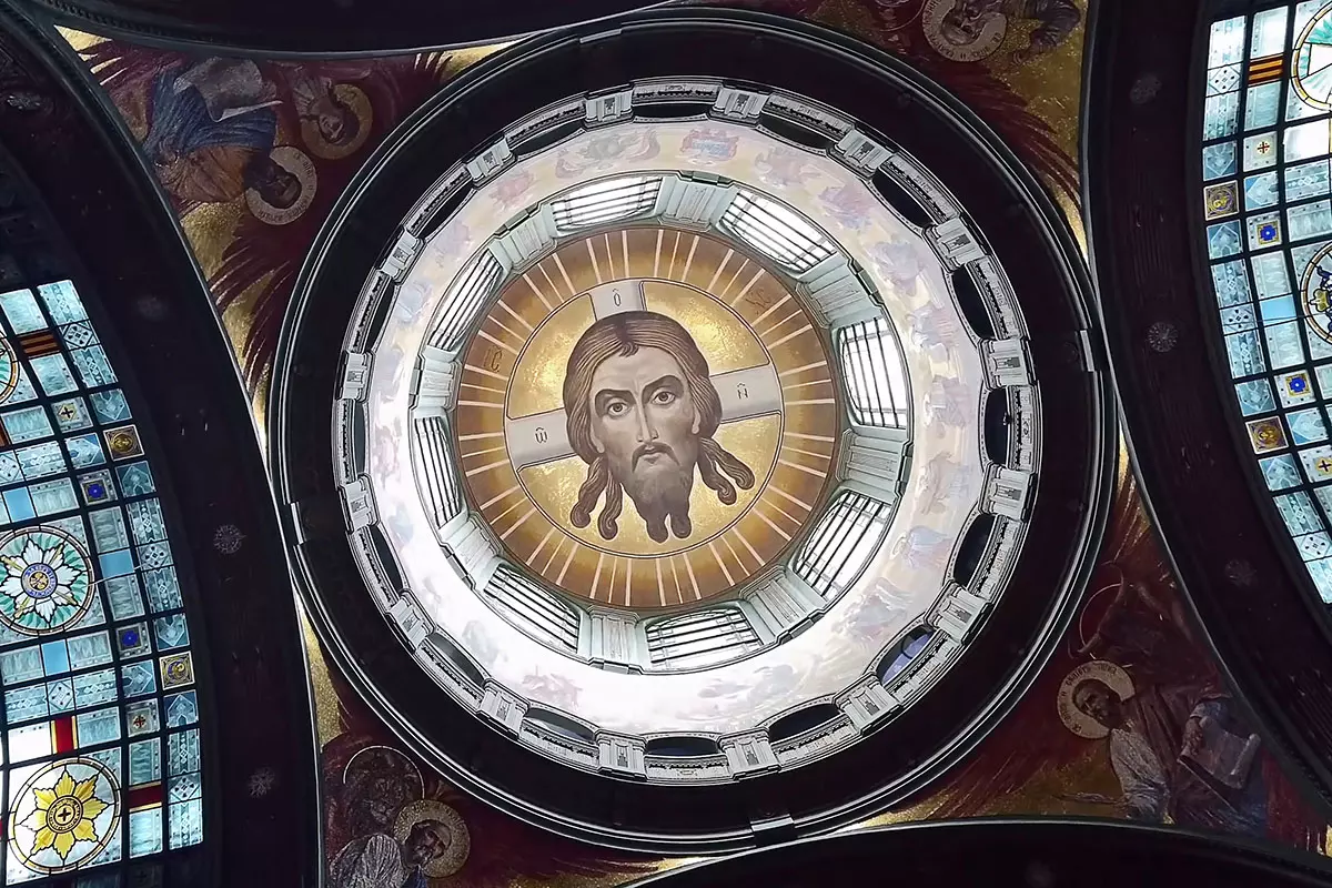 — Для всего мира важный момент — что у нас самое большое изображение Христа в мире в куполе. Купол, правда, не самый большой, но изображение Христа — лика Спасителя — самое крупное. Это ноу-хау. Такого никогда не было. Спас Нерукотворный.