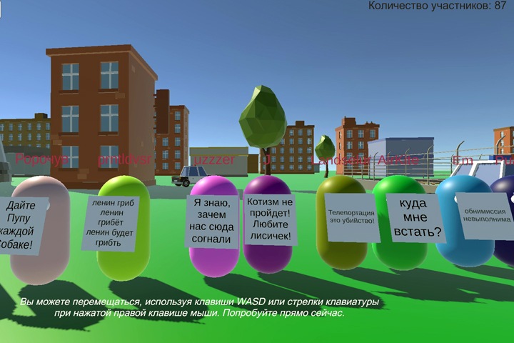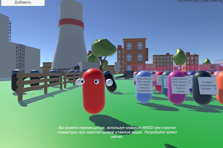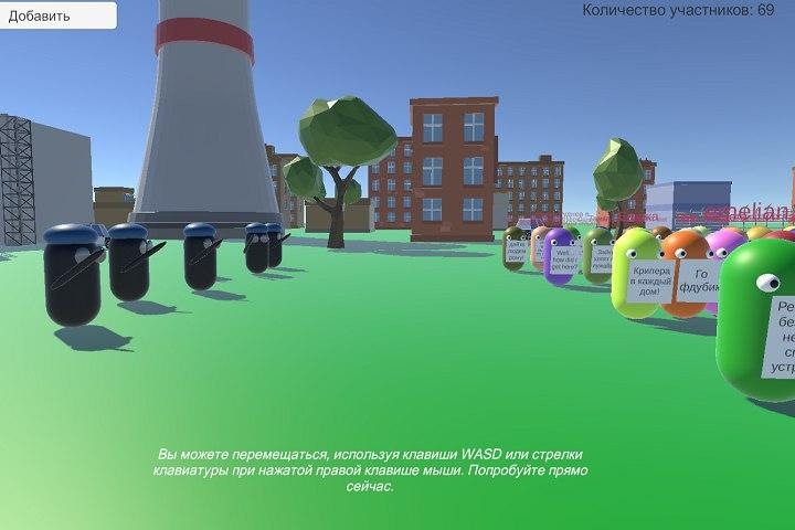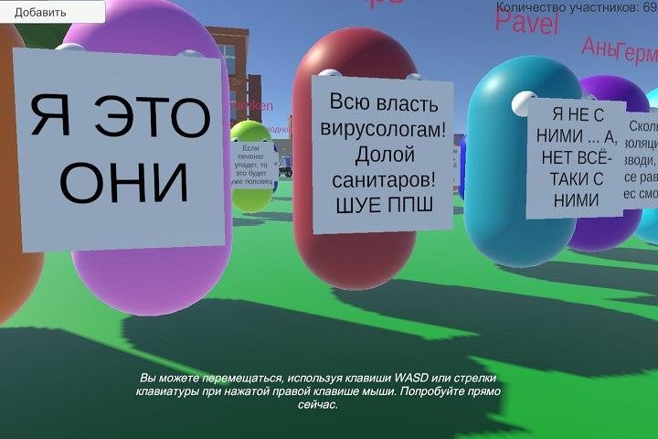 «Конечно это [игра] не лучше, чем на улице, но это интересная альтернатива, потому что также, как и на улице, каждый может создать своего персонажа со своим плакатом, а потом, управляя клавишами WASD с зажатой правой клавишей мыши, походить между остальными участниками, читая плакаты, — отметил Терёхин. — При этом, мне кажется, все-таки смысл любой „…страции“ — это быть всем вместе в одном месте, а созданное приложение как раз и реализует этот сценарий. Конечно, я сделал это приложение вчера всего за несколько часов и можно было бы сделать гораздо больше фишек, полный мультиплеер, но для фана — этого вполне достаточно. Дальше из этого можно вырастить полноценную платформу онлайн-митингов, сращенную, например, с процессом подачи петиций. Но это так, фантазии. Просто я недавно был на конференции в виртуальной реальности, где было почти 1000 человек, вот и вдохновился».