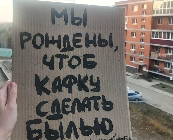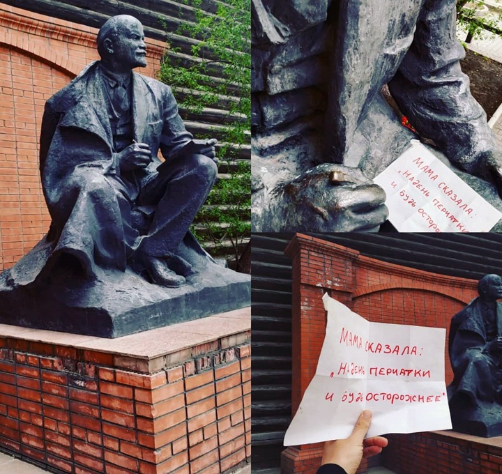 Но перед этим почитайте обращение идеолога акции, новосибирского художника Артема Лоскутова: «Вирус лишил нас иерархий: теперь нет больших и маленьких монстраций, все оказались в первом ряду своей личной монстрации, где каждый лозунг — главный. Тотальная децентрализация. Монстрация становится Облачной, отражаясь облаком фотографий — своих