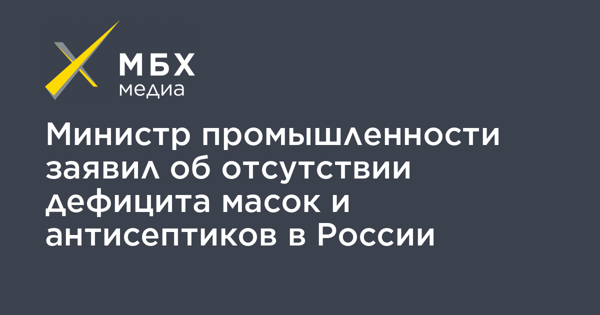 Министр промышленности Денис Мантуров заявил, что в России нет дефицита масок и антисептиков. Об этом он сообщил в интервью на телеканале «Россия-1», пишет ТАСС.