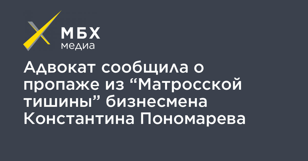 Бизнесмена Константина Пономарева, обвиняемого в мошенничестве и неуплате налогов, этапировали из московского СИЗО «Матросская тишина», защите и родственникам не сообщают о его местонахождении. Об этом сообщила «МБХ медиа» адвокат Анна Ставицкая.