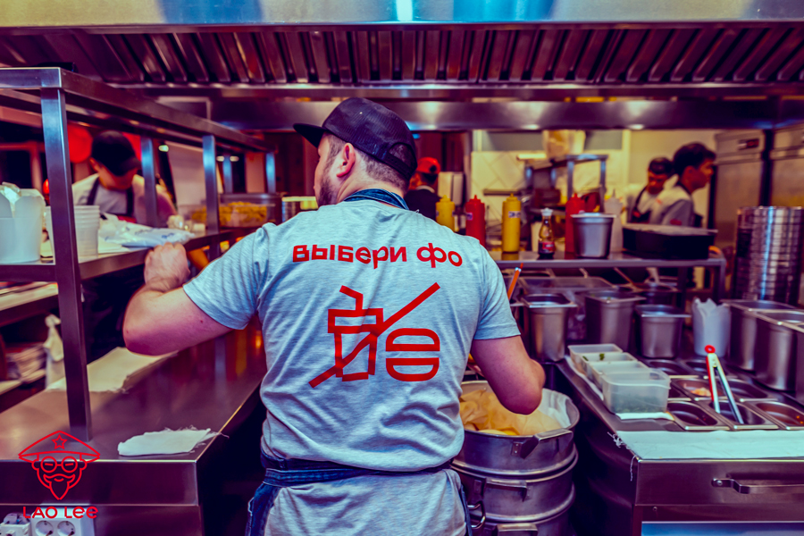 Работников задействовано везде много: и на центральном производстве, и на торговых точках. Комплектация штата зависит напрямую от размера кафе, это прямая корреляция. Грубо говоря, если один сотрудник может за пять минут приготовить один рис на воке, то два сотрудника с двумя воками могут за пять минут приготовить два блюда, а три — три. Соответственно, чем выше проходимость, тем больше сотрудников требуется.