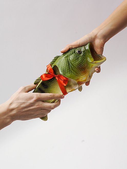После моего возвращения в Петербург у моего друга был день рождения, и я решил вручить ему эти тапки. Все гости были такие красивые, в костюмах, передо мной человек подарил ему AirPods за 20 тысяч рублей, а я стоял в очереди и думал, что сейчас меня ждет полный провал. А потом друг разворачивает мой подарок и говорит: «Это что, тапки в форме рыб?», тут же сбрасывает туфли, надевает их и ходит так весь вечер. На празднике человек 20 спросили у меня, где я взял такие.