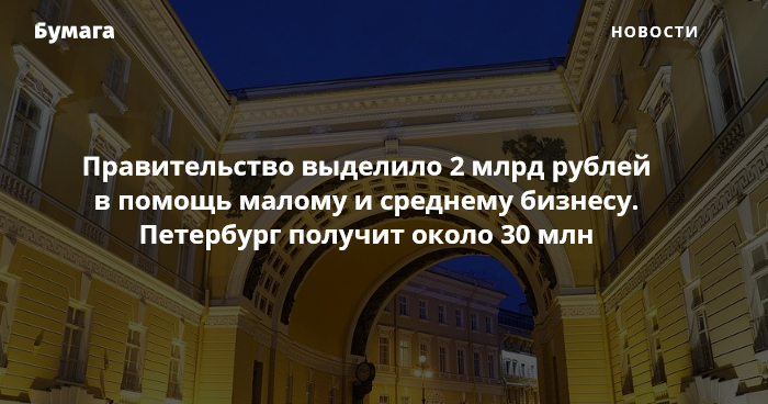 Согласно документу, до 4 июня Минэкономразвитию необходимо заключить соглашения с регионами, после этого туда направят бюджетные деньги. Отмечается, что Петербург получит 30,7 млн рублей.