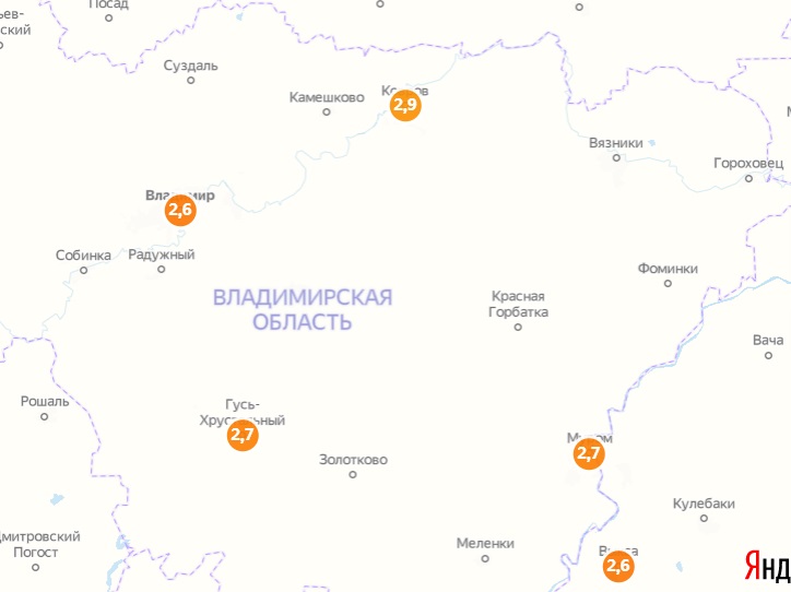 В районных центрах области ситуация обстоит лучше. В Ковровском районе 5 мая в 12:00 индекс самоизоляции достиг относительно высокой отметки в 3 балла из 5.