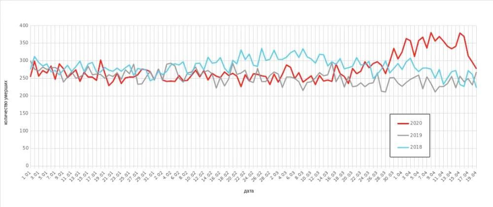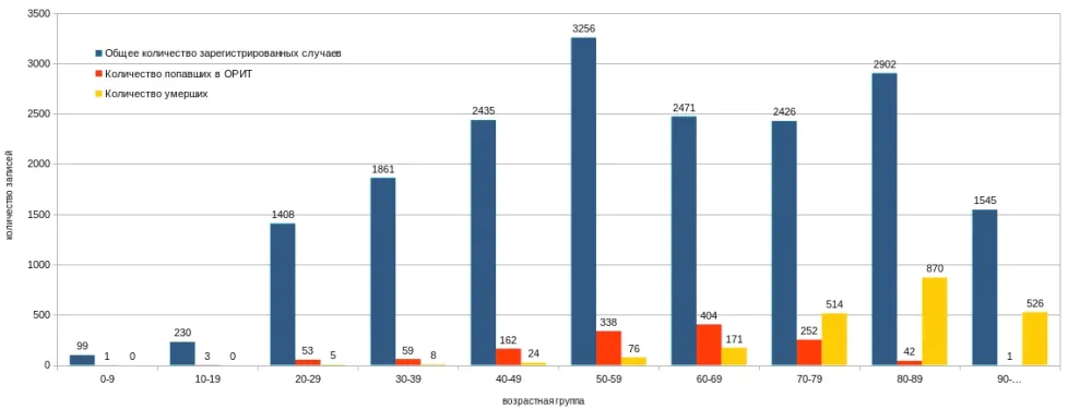 При анализе количества погибших необходимо учитывать, что сюда включают всех умерших, у которых диагноз коронавирус подтвержден лабораторными тестами, вне зависимости от причины смерти [3]. В это число попадают погибшие и от сердечной недостаточности, и от инсультов, и от любой пневмонии. Единственное условие — наличие подтвержденного диагноза COVID-19.