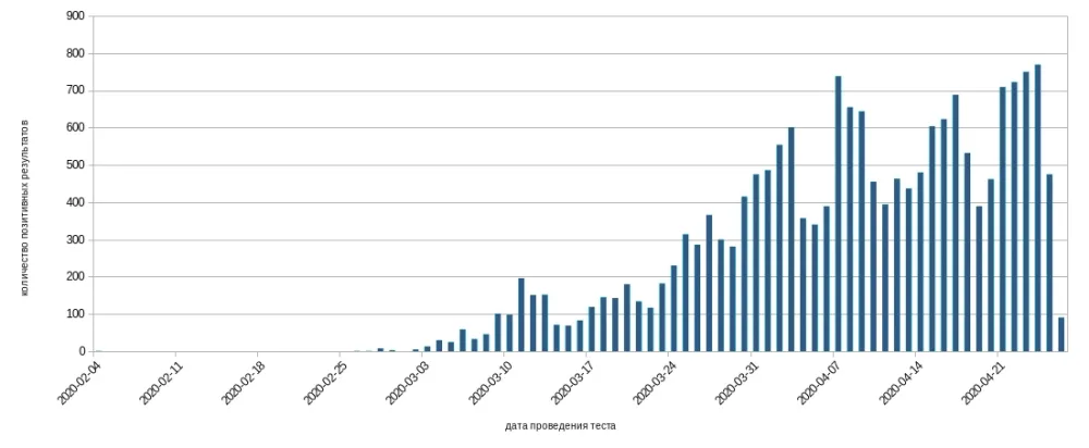 Значительный, постоянный, но неравномерный рост числа тестов делает анализ динамики заражений достаточно сложной задачей, и даже изменение доли выявленных случаев от числа проведенных тестов мало о чем говорит, ведь выборка не только неслучайна, но и меняется со временем. Также не удалось найти информацию, входят ли в эту статистику повторные тесты.