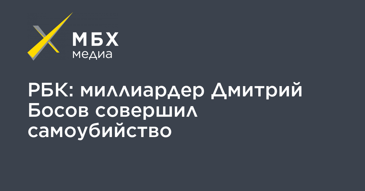 Миллиардер Дмитрий Босов, занимающий 86 строчку в списке Forbes с состоянием $1,1 млрд, покончил с собой. Об этом рассказали РБК два его знакомых.