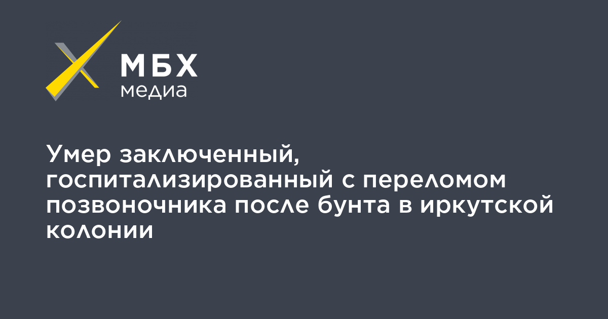 Один из заключенных исправительной колонии № 15 в Иркутской области, где произошел бунт, умер после того, как его госпитализировали с переломом позвоночника и другими повреждениями. Об этом сообщил «МБХ медиа» правозащитник Павел Глущенко. Это вторая смерть заключенного колонии — ранее одного из них нашли повешенным после бунта.