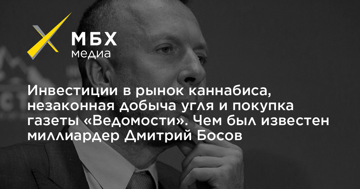 Инвестиции в рынок каннабиса, незаконная добыча угля и покупка газеты «Ведомости». Чем был известен миллиардер Дмитрий Босов