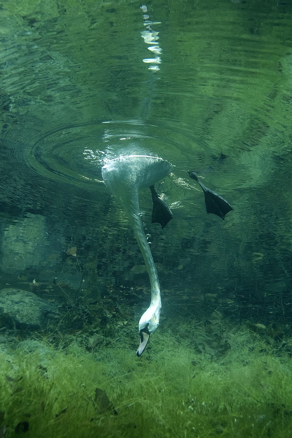 Я встретил лебедей-шипунов на Голубом озере в Кабардино-Балкарии. Это озеро имеет одну и ту же температуру круглый год, так что несколько семейств лебедей прилетают сюда зимовать. Лебеди питаются водорослями, а поскольку большое плавучее тело не позволяет этой птице нырять в глубину, природа подарила ей длинную шею, которая под водой вытягивается еще больше. У этой фотографии замечательная, хоть и чуточку грустная история. В русской мифологии лебедь — волшебная птица. В сказках лебеди оборачиваются небесными девами, мудрыми и прекрасными. Образ женщины-птицы один из самых требовательных и самых выразительных в балете. Именно поэтому мою фотографию лебедя, будто с небес тянущегося вниз, выбрала дизайнер Татьяна Парфенова для последнего платья, пошитого Майе Плисецкой.
