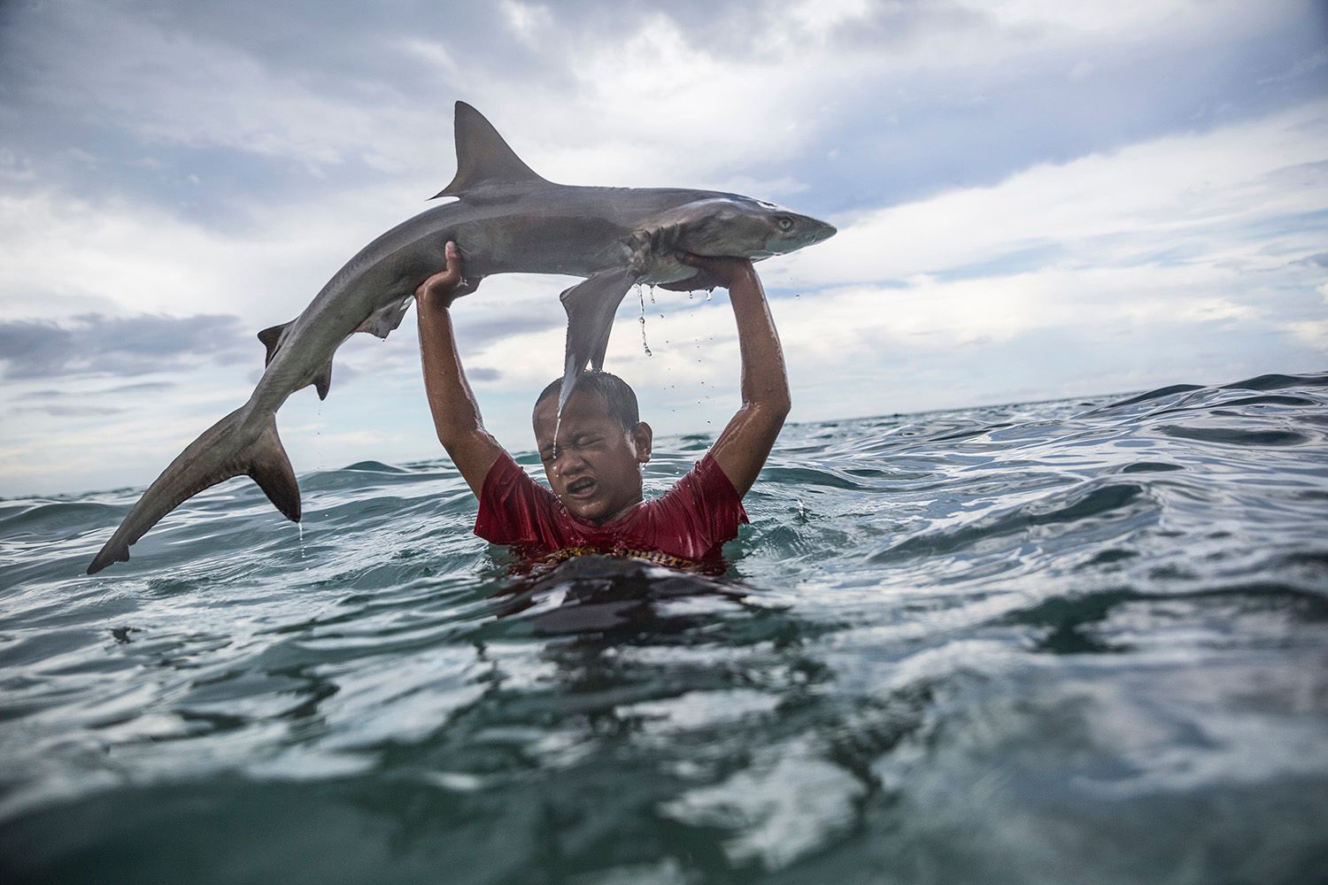 Мальчик на фотографии — сын одного из рыболовов. Он играет с акулой перед тем, как ее разрежут. Это вроде приключенческая тревел-фотография, но на самом деле за ней стоит очень много.