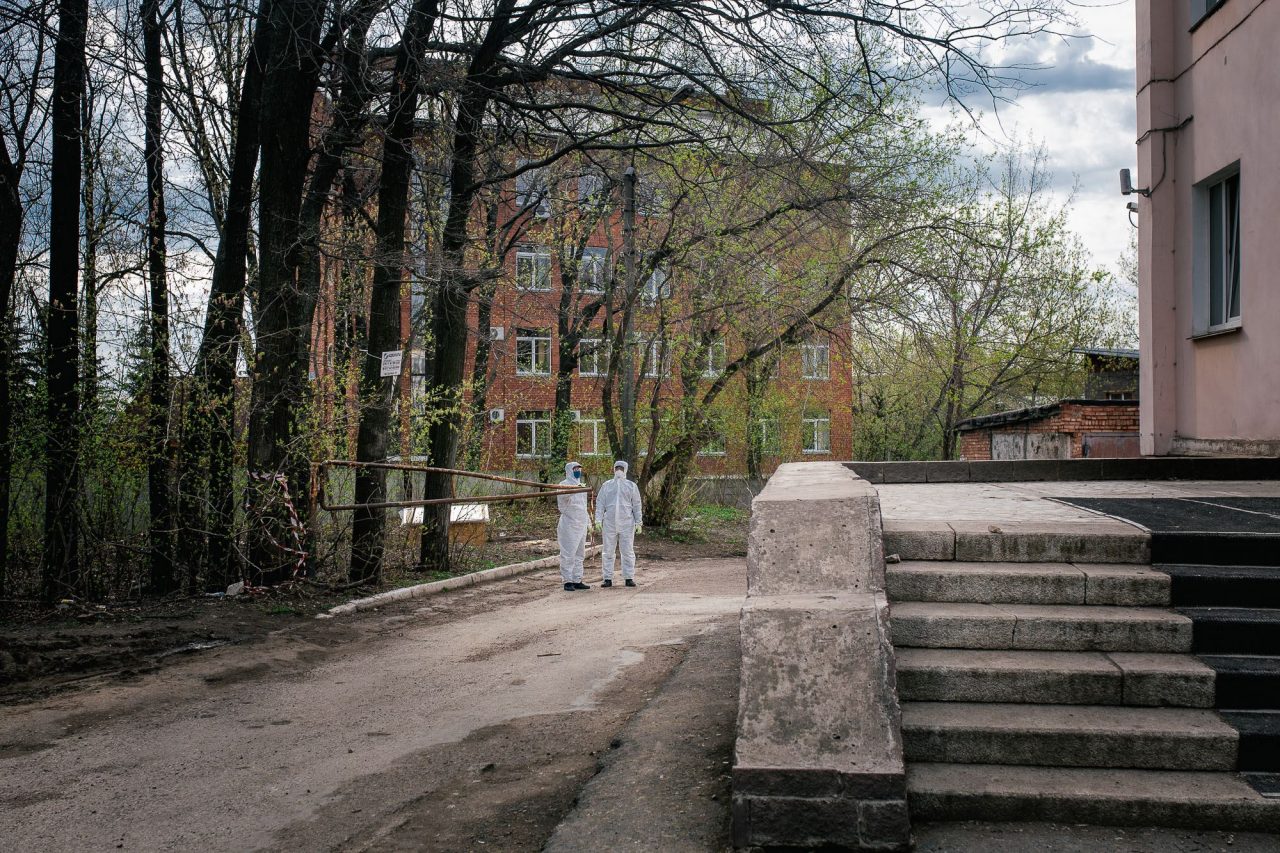 Работники ритуальной службы перед моргом в ожидании телаФото: Вадим Брайдов для ТД Когда в разговорах все чаще стало звучать слово «пандемия», я начала искать маски и защитные костюмы. Цены на них тогда резко подскочили, да и найти нужное нам количество было сложно. Собирали по крупицам. У нас были, наверное, все виды масок, некоторые реально пугали своим видом! Шили сами, с антибактериальной прослойкой, как-то выкручивались. В каждом салоне мы установили дезинфицирующие лампы. В машинах они уже были, потому что наша компания использует дорогие катафалки, а не просто переделанные фургоны.