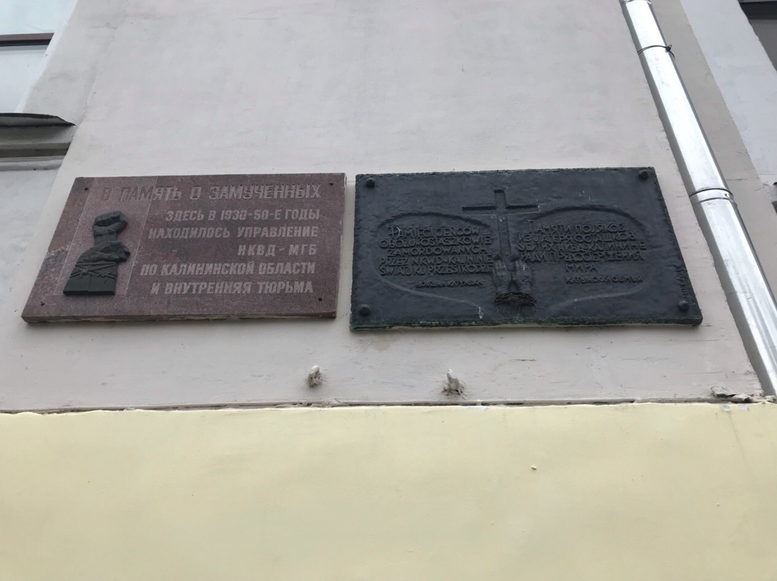 В заявлении международного общества "Мемориал" говорится: "Сегодня, 7 мая 2020 года, с фасада бывшего здания УНКВД по Калининской области (ныне здесь размещается Тверской государственный медицинский университет) сняты две мемориальные доски, установленные в 1991 году в память о жертвах сталинского террора. Надписи на демонтированных досках гласили: "В память о замученных. Здесь в 1930-50-е годы находилось Управление НКВД-МГБ по Калининской области и его внутренняя тюрьма" и "Памяти поляков из лагеря Осташков убитых НКВД в Калинине. Ради предостережения мира".