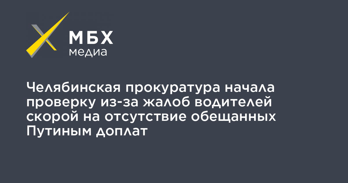 Координатор «Правозащиты Открытки» Алексей Прянишников сообщал «МБХ медиа», что водители скорой помощи МАУ «Челябмедтранс» пожаловались в Генпрокуратуру и правительство региона из-за отказа руководства выплачивать в полном объеме доплаты в 25 тысяч рублей, которые были обещаны Владимиром Путиным.